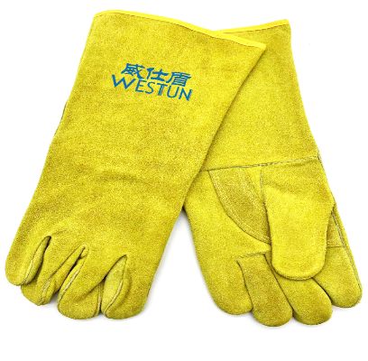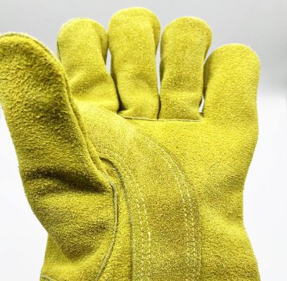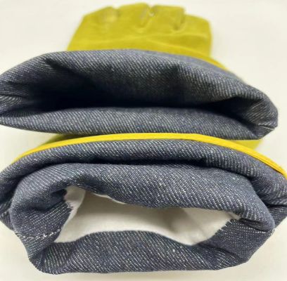 采用金黃牛二層皮制作,掌 心加托。耐磨,防燙 全部凱夫拉防火線縫制,全 封絨里舒適吸汗。