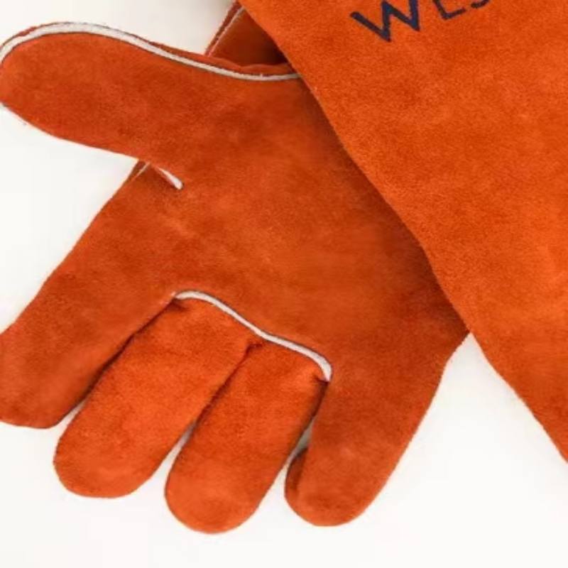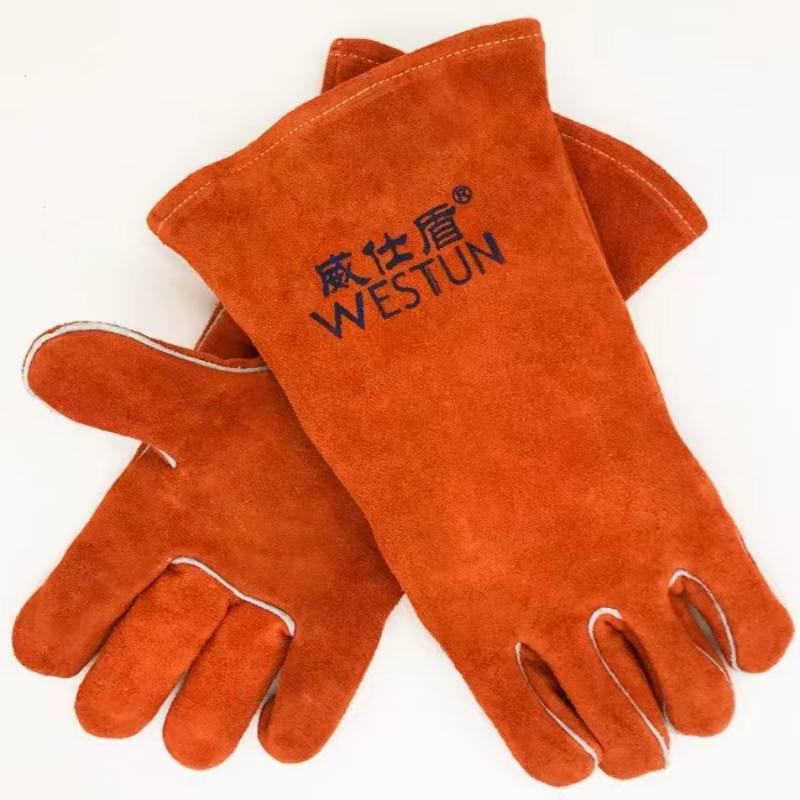G-2101橙紅色牛二層皮電焊手套 35CM