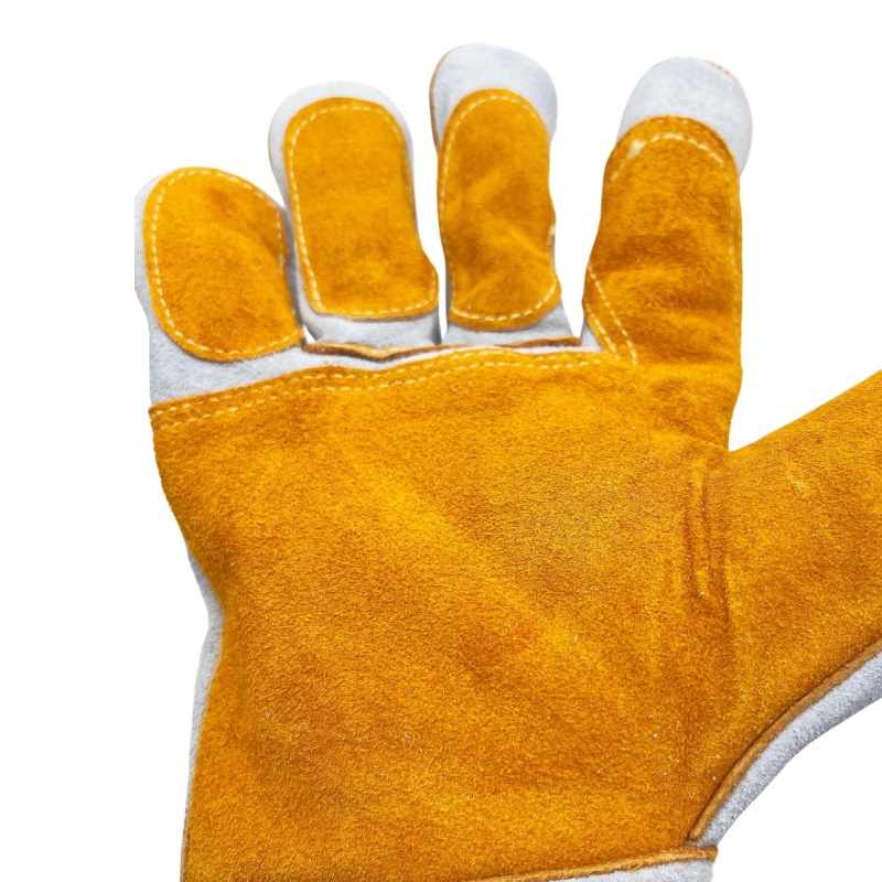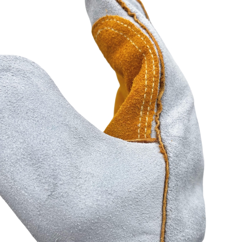 A級牛二層皮,手掌部位雙層牛皮加厚,防火線加膠水填縫耐用